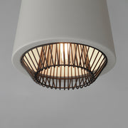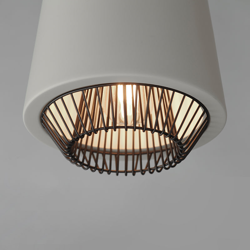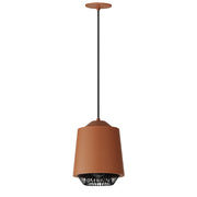 Both modern and industrial, the angular lines of these aluminum spun shades refresh a classic concept in a clean, contemporary execution. The shades - available in Brick, Black, and a Pale Gray powder coated finish, feature multiple joints and peaks in their form and at their bottom intentionally return inward. The shape at the bottom is not only attractive, but a cleverly conceived method to support a wire network of Black steel that forms a cage without visible hardware.