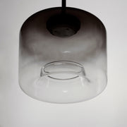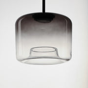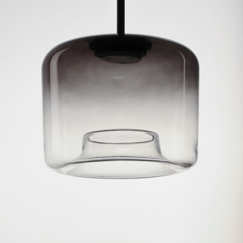 Large cylindrical glass shades feature a unique return as they are illuminated with LED integrated light sources.