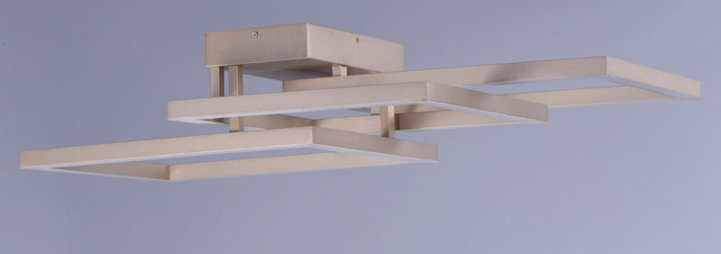 Multiple squares finished in Champagne, are layered in a geometric pattern to form an interesting lighting sculpture. Enclosed behind the white acrylic lens is high power LED for even and economical illumination.