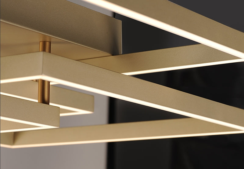 Multiple squares finished in Champagne, are layered in a geometric pattern to form an interesting lighting sculpture. Enclosed behind the white acrylic lens is high power LED for even and economical illumination.