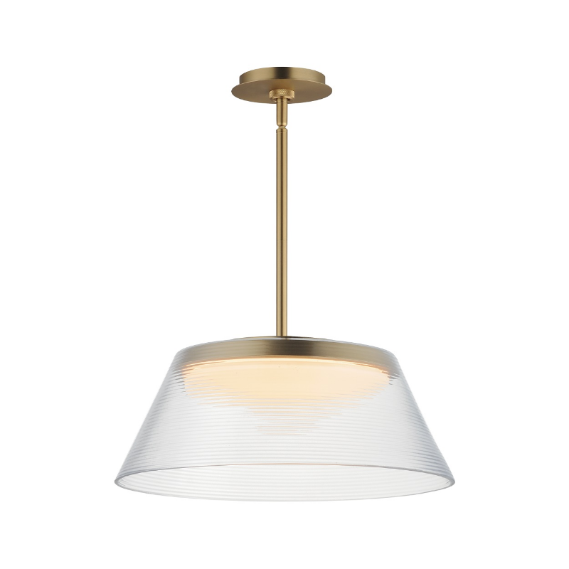 A tapered, ribbed glass shade adds a contemporary edge to a simple design. Available in Clear Ribbed glass with a plated Gold frame or in Emerald Green or Smoked glass with Matte Black frames. These retro-futuristic shades minimize peripheral glare, while a Matte White acrylic shallow domed diffuser softly disperses LED lighting, delivering ample illumination.