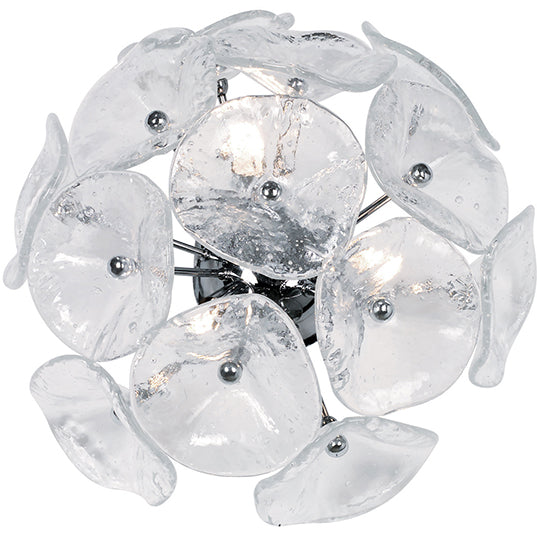 - Finish/Glass: Polished Chrome/Clear Murano