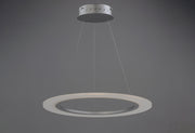 A new variation of a very popular series with many different configurations many of which are large scale for commercial applications. Metal rings of Matte Silver support horizontal acrylic diffusers which glow when illuminated by dimmable LED.
