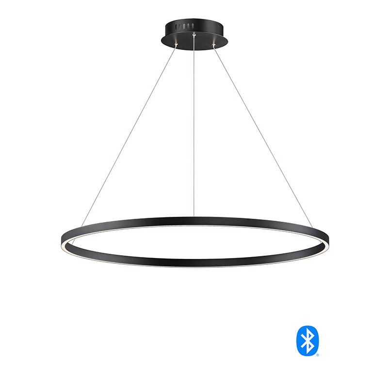 Rings formed from U-shaped aluminum channel are finished in your choice of Black or Gold. These fixtures are Bluetooth enabled which allows you to tune the color temperature to match your mood or room decor.