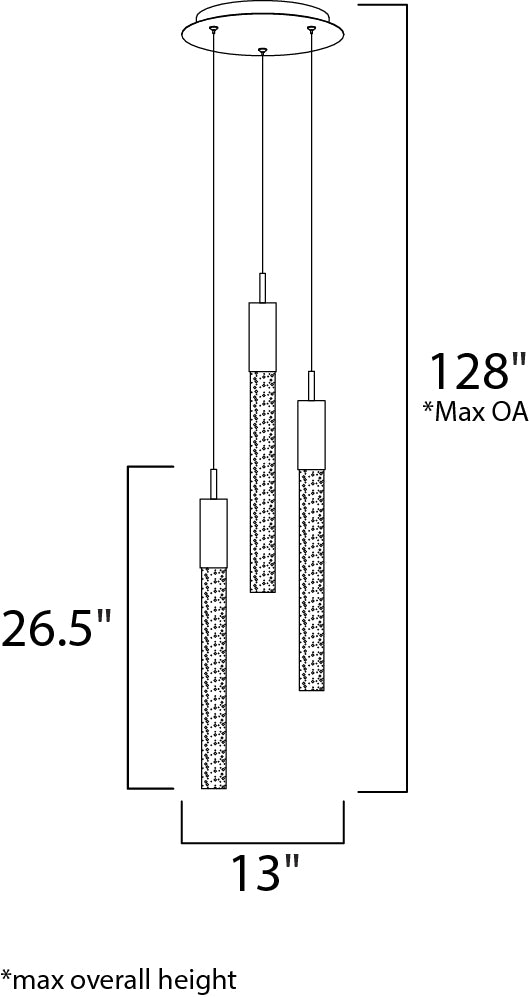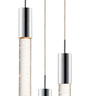 Our ever popular collection has grown up. Large scale fonts of clear bubble glass are suspended from Polished Chrome supports with no visible screws. Top of the line LED modules illuminate the glass from top to bottom with excellent color rendering.