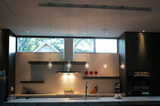 A simple idea gracefully executed in the Larmes collection. Row upon row of Clear oversized teardrops, mounted onto an extended lamp holder that supports xenon lamps, sets the stage. Individually adjustable drops for custom stagger effects allow for dramatic impact. An added benefit of each drop being aircraft cable-suspended, is the ability to adjust the overall height of the piece to fit the space. The final result is stark and stunning.