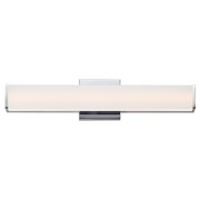 Squares of Satin White glass are supported by flat Polished Chrome end caps with an extruded aluminum frame. Housed on the backside of the LED vanity light is a device to select from 5 color temperatures: 2700k-3000k-3500k-4000k-5000k. A dual mounting backplate allows for the fixture to seamlessly install to a switch box making the glass appear as if floating on the wall. An additional mounting bracket and cover plate is included in the packaging to accommodate larger junction boxes.