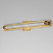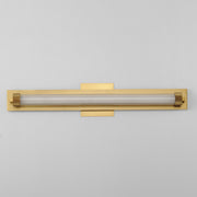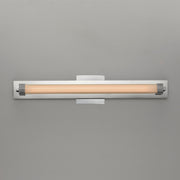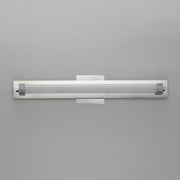 Clear ribbed glass encases a tube of opal white acrylic evenly illuminated by LED. The ends of the glass shade are fitted with knurled cylinder forms that suspend the sconces from their mounting plates. Dual mounted options are available for this series allowing it to be installed on single gang junction boxes.