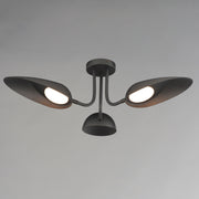 Drawing the outdoors in, the inspiration for this piece combines iconic modern lighting with biophilic forms. Long slender armatures descend in organic slopes to domed, ovoid shades that appear leaf-like.