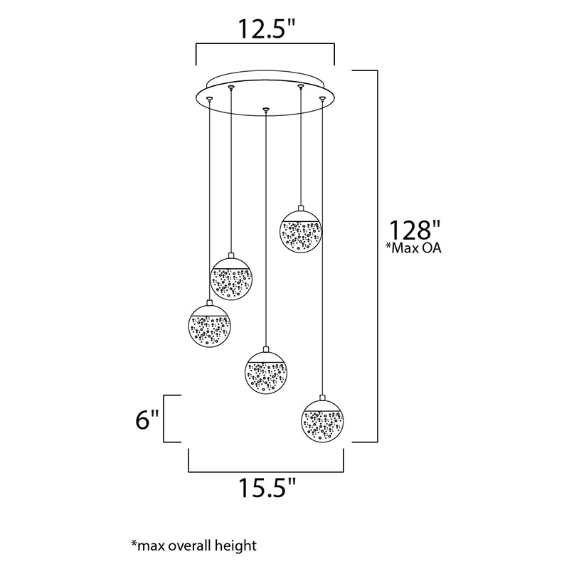 We took this popular collection and made it better. We took the xenon bulb out of the middle and enclosed a LED module in the cast Polished Chrome cap that supports the clear bubble glass balls. The glass screws into the cap so there are no visible screws for a very clean look.