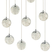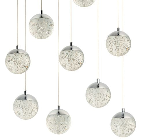 We took this popular collection and made it better. We took the xenon bulb out of the middle and enclosed a LED module in the cast Polished Chrome cap that supports the clear bubble glass balls. The glass screws into the cap so there are no visible screws for a very clean look.