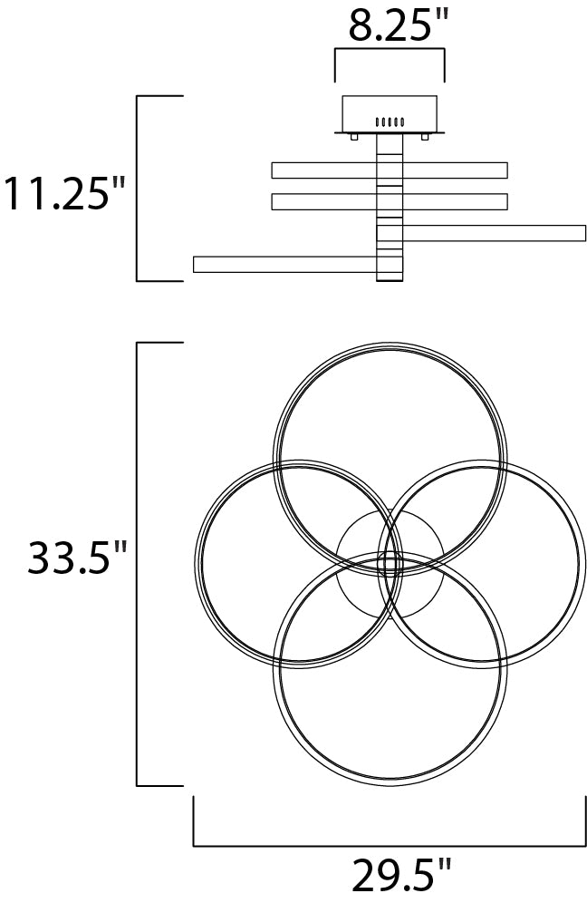 Rings of various sizes finished in Black are supported from a column of soft Gold. This European classic is a soft contemporary design which works in today's home décor.
