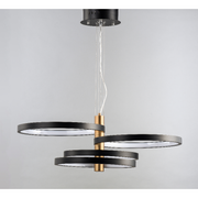 Rings of various sizes finished in Black are supported from a column of soft Gold. This European classic is a soft contemporary design which works in today's home decor.