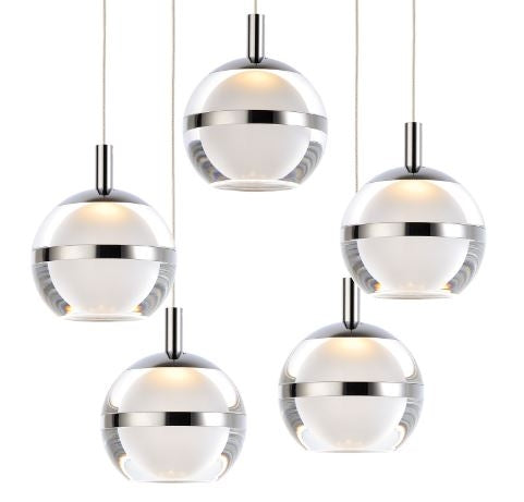 Orbs of crystal Clear acrylic are trimmed with a metal band and frosted inside for excellent light diffusion. The bottom is dimpled for a unique optical effect.