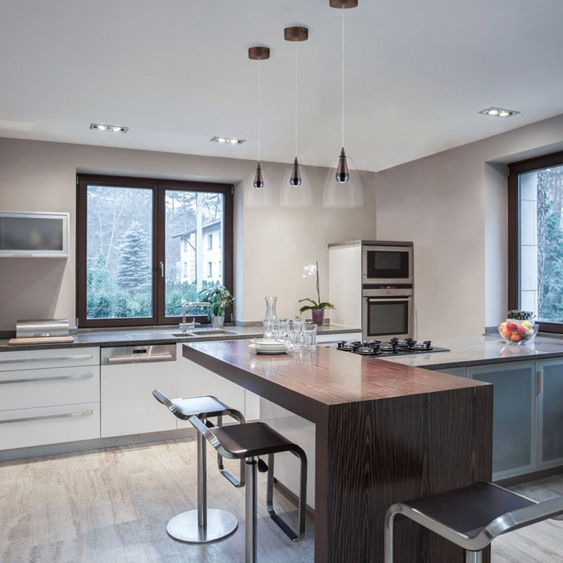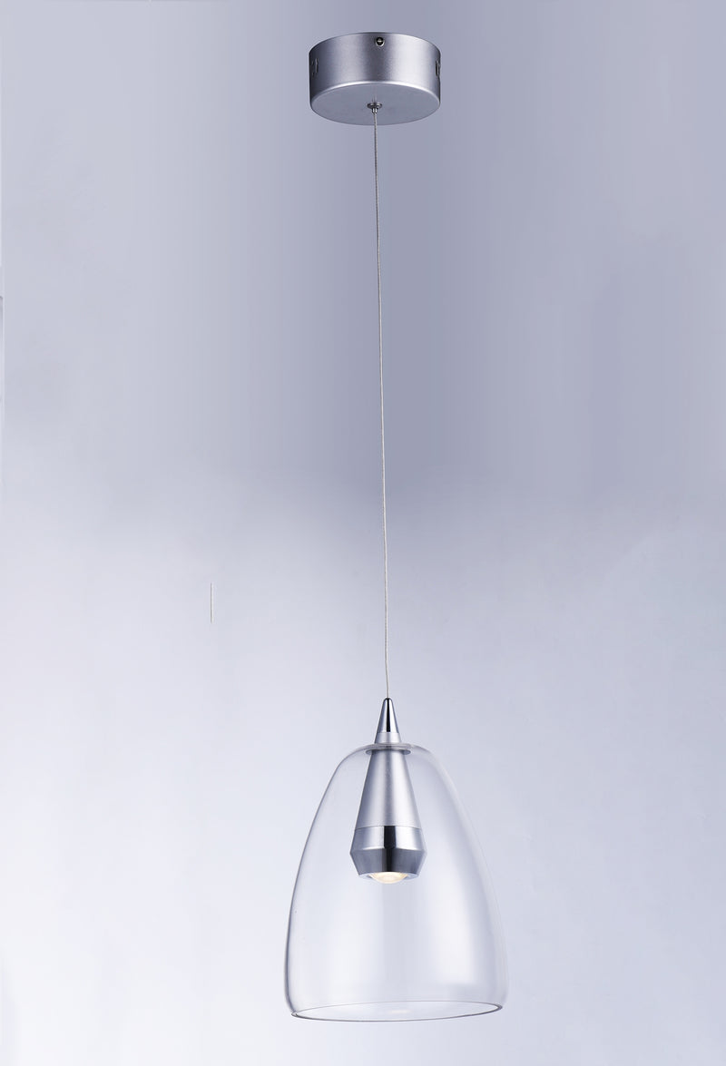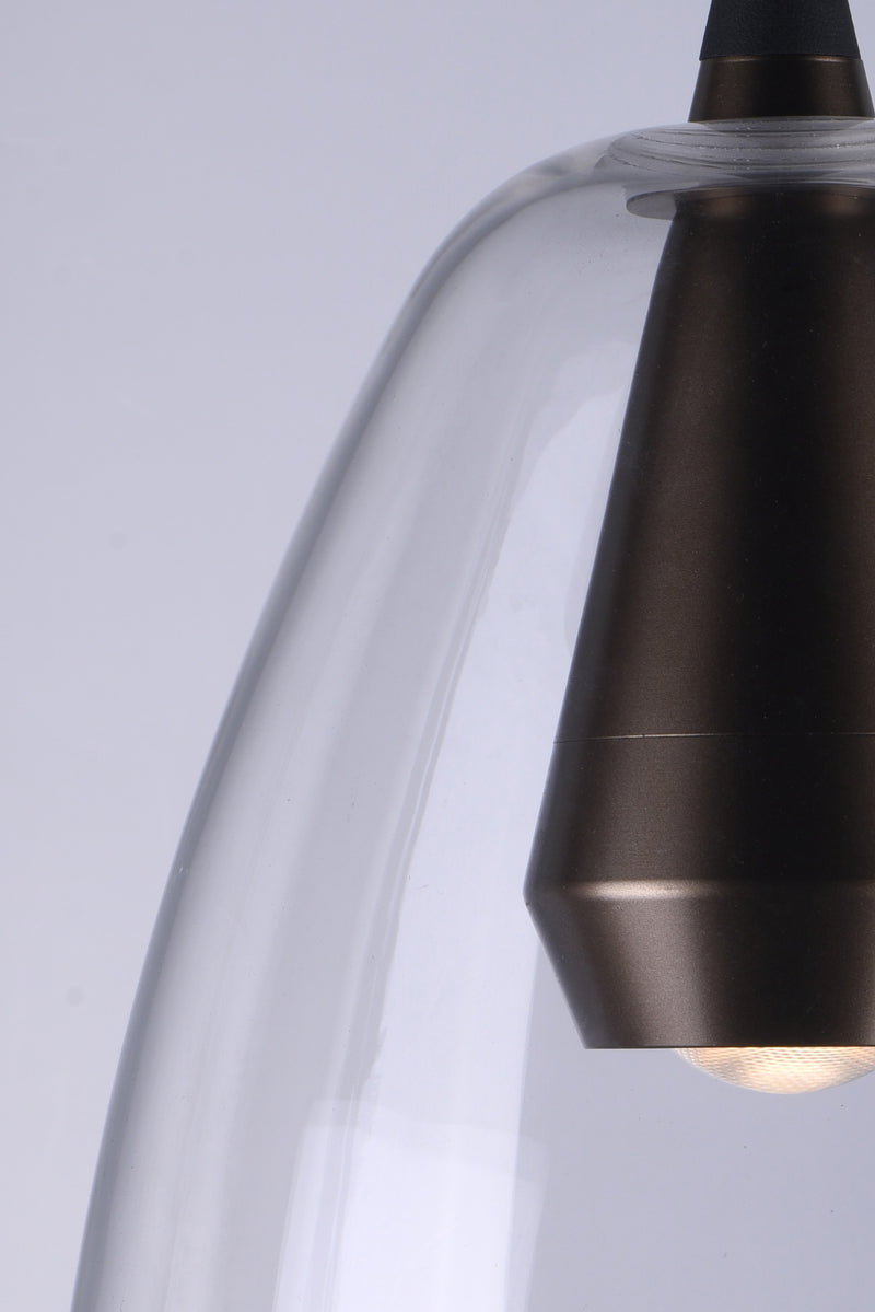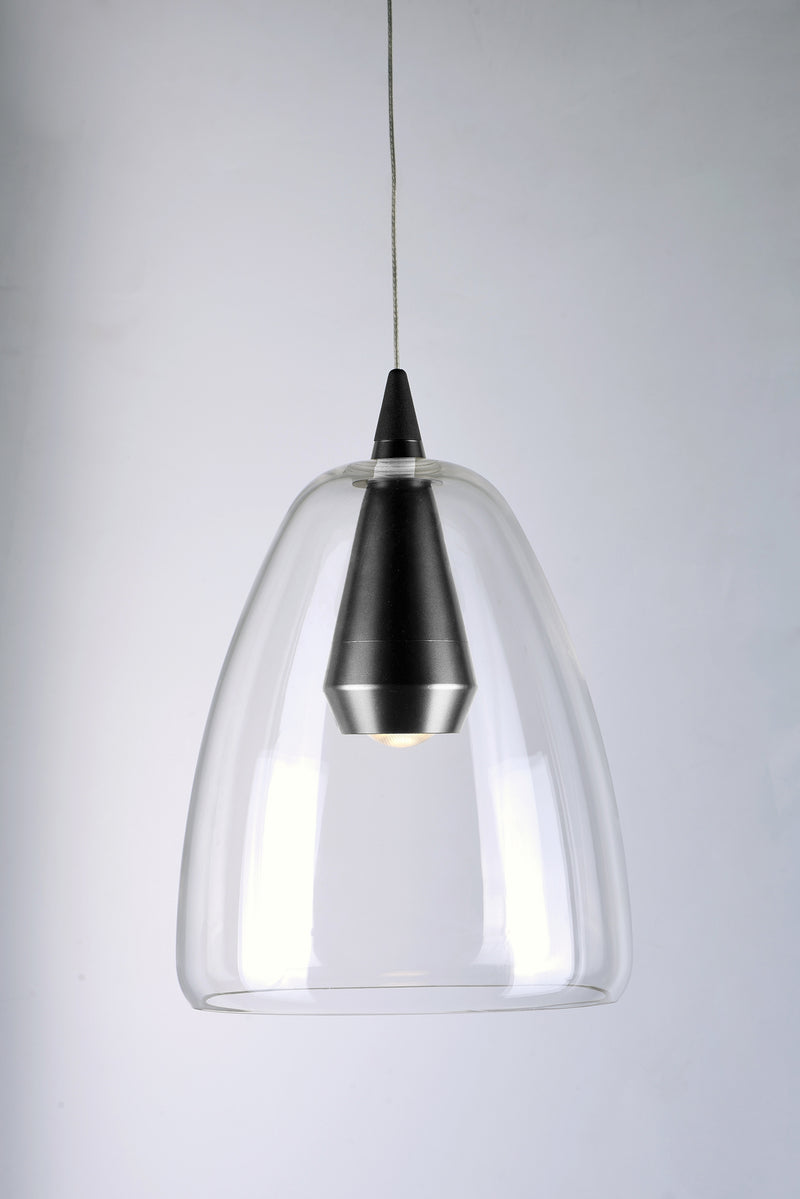 Clear glass domes are suspended from a machined aluminum font finished in your choice of two tone Silver with a Polished Chrome accent or Black with a brushed Coffee finish. Housed inside the machined font is a high power LED module which illuminates without glare.