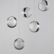 Ridged acrylic profiles extend in two halves along a coordinating aluminum extrusion in Polished Chrome. As if in motion, the form creates a frequency of light that is illuminated from internal LED integrated light sources. Available in a variety of configurations, this series is great for modern interiors.