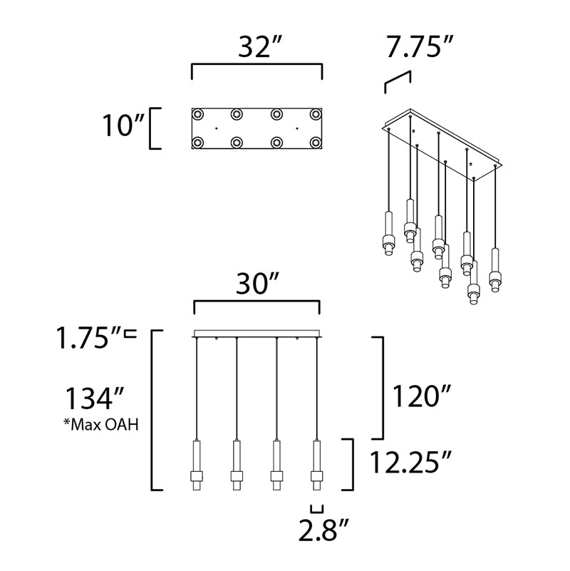• Canopy: 32" L x 9.75" W x 1.75" H