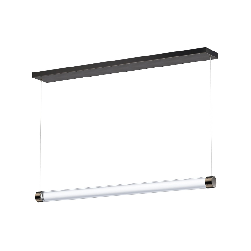 A disappearing act of LED along an extended length of crystal-clear acrylic, these pendants vanish from view and simultaneously guide the slim, streamlined LED light source. Twist the machined aluminum ends finished in Gunmetal or Brushed Aluminum to direct the light wherever you choose.