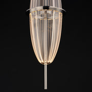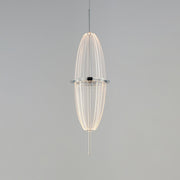 A arrangement of stainless steel and light guided acrylic form elongated rhombus shapes discreetly lit by LED. On the larger size pendants an additional aircraft cable kit is provided so that you can mount the pendants either vertically or horizontally at various angles.
