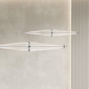A arrangement of stainless steel and light guided acrylic form elongated rhombus shapes discreetly lit by LED. On the larger size pendants an additional aircraft cable kit is provided so that you can mount the pendants either vertically or horizontally at various angles. Finished in Polished Chrome, these pendants are out of this world.