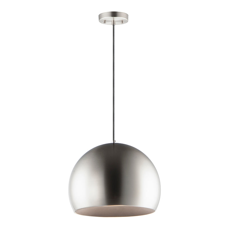 Spherical shaped pendants are constructed unibody design. A dramatic two-tone finish is available in your choice of Black/Satin Brass, Dark Gray/Coffee, or Satin Nickle/Black. The LED light source is concealed to reduce glare while providing ample light below.
