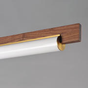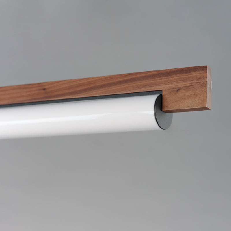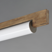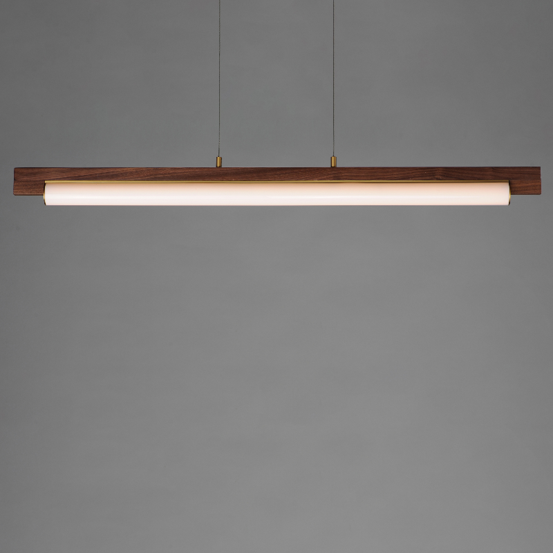 Horizontal Spans of natural wood frame an evenly diffused LED omnidirectional light source. Choose from genuine Walnut with Black or Natural Aged Brass accents or solid oak in a hand-applied Driftwood finish. Whether surface mounted or suspended as a pendant, this collection provides a natural touch to an otherwise modern, minimalist design.