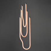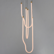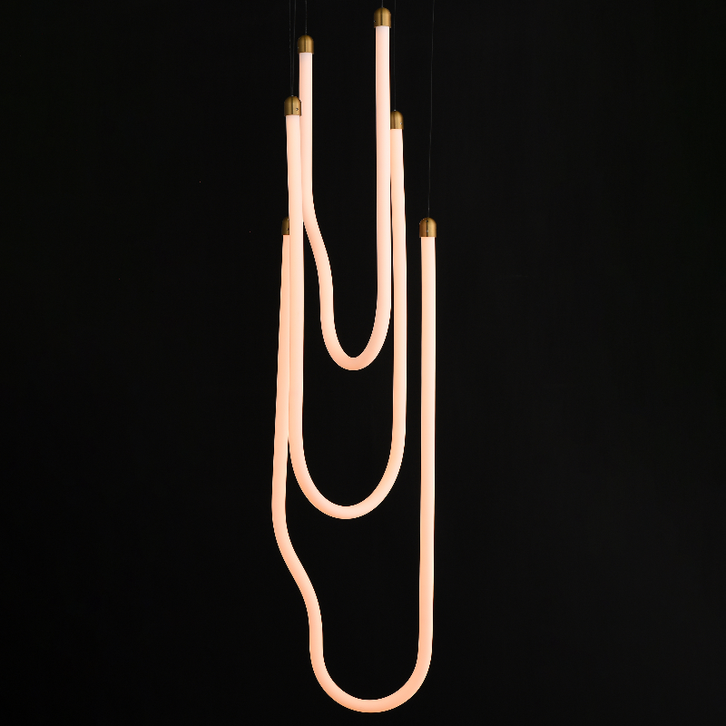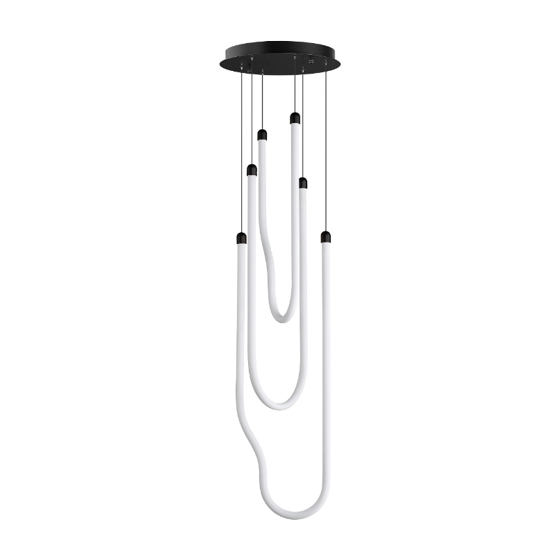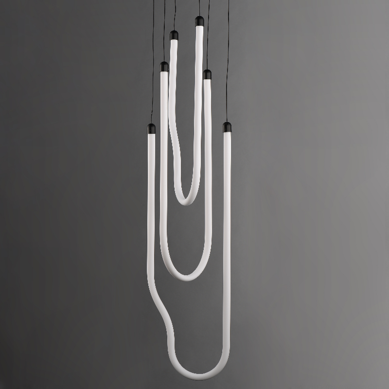 Sweeping matte white acrylic tubes encase an omnidirectional LED light source, arranged in abstract configurations inspired by solar flares. Minimal in composition yet dramatic in form, the Soleil collection offers a striking lighting solution.