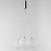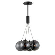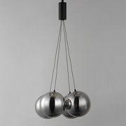 Clusters of glass globes in various sizes and color are suspended from a central point and burst outward.