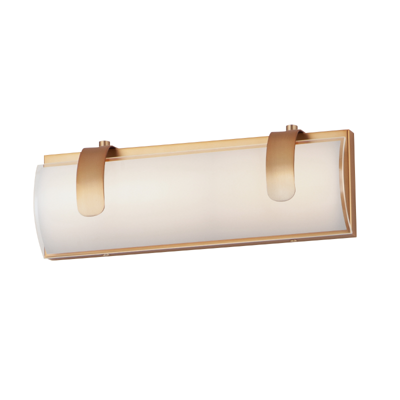 Designed to fit the essentials, this bath vanity series will always come in clutch. Dedicated LED illuminates the backside of a low-profile curved opal White glass sweeping upwards to a metal latch conveniently finished in your choice of Polished Chrome, Gold, and Matte Black. Make a statement without saying too much.