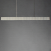 Long spans of fluted concrete panels blend Western classicism with modern technology. Scalloped concrete is finished in a Chalky White finish and suitable for damp locations. Choose from stem hung pendants or backlit wall panels that provide ambient lighting and bring tranquility to spaces.