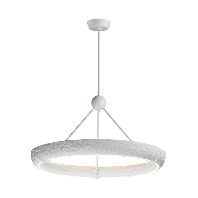 Geist reimagines 20th-century plasterwork in a sculptural ring crafted from artisan plaster. Integrated LEDs provide both uplight and downlight, creating an atmospheric glow.
