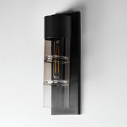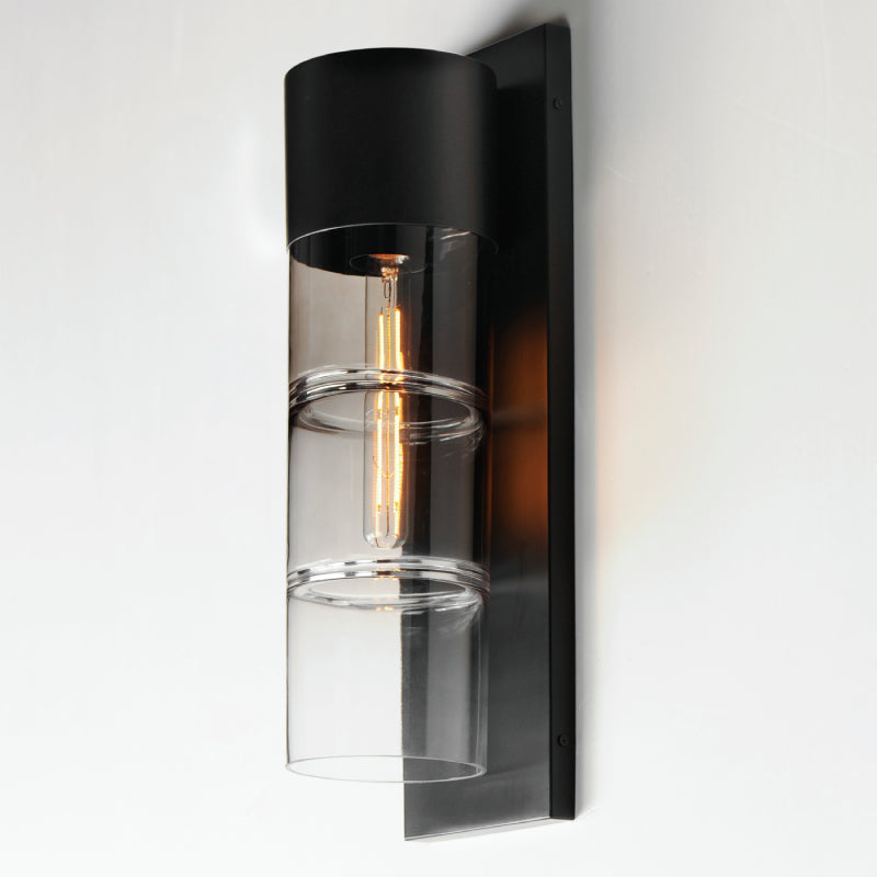 Segmented glass cylinders in a grey Smoke Gradient filter nostalgic tubular LED lamps. The Matte Black frame adds a dark contrast providing ambient light as a guide to your exterior.
