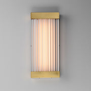 A colonnade of faceted crystal columns form these rectangular wall sconces suitable for wet locations. The crystals are backlit with an evenly distributed LED light source that is set within non-corrosive Aluminum and Stainless Steel frames.