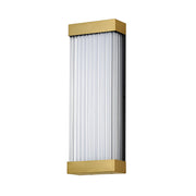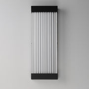 A colonnade of faceted crystal columns form these rectangular wall sconces suitable for wet locations. The crystals are backlit with an evenly distributed LED light source that is set within non-corrosive Aluminum and Stainless Steel frames.