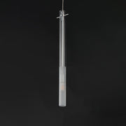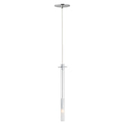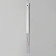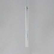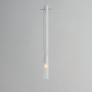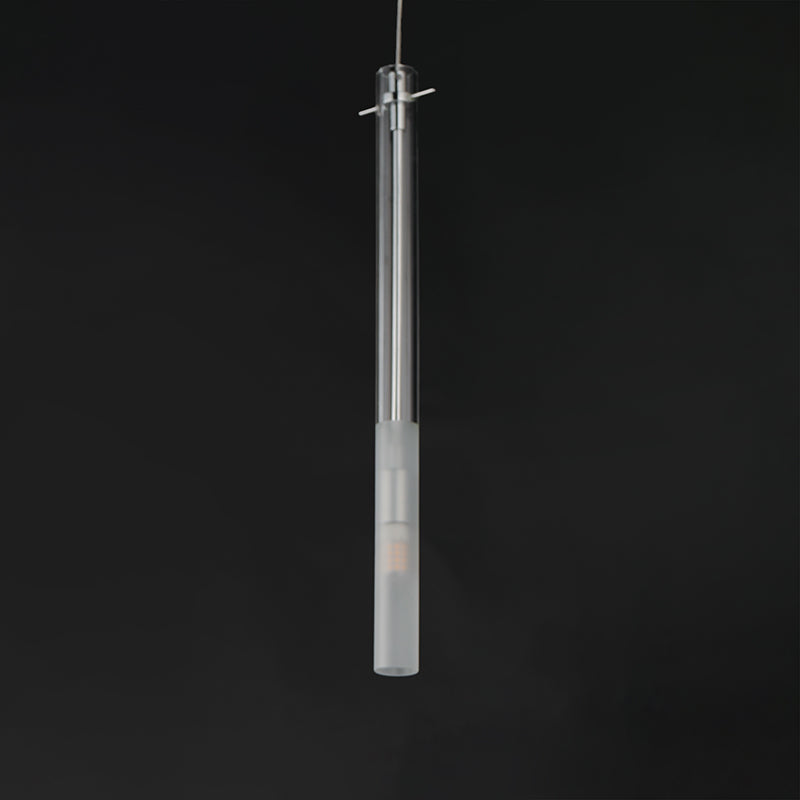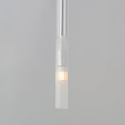 Slender Clear glass tubes sheath a Polished Chrome rod that supports small LED lamps. The glass is etched at a dividing line in the glass to softly diffuse the light. Available in two lengths of glass tube, the pendants are also available in multiple configurations that create a modern candle-like cluster. The surface mounted option supports the glass on a structure that allows it to hang freely for dual purpose as a ceiling flush mount or a hanging glass shade when mounted to a wall.