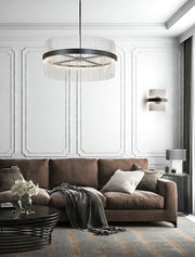 The tubing comes to life when illuminated from the front by LED which directs light both up and down for even room illumination. The color temperature of the LED can be adjusted by any Bluetooth device to change the appearance of the fixture to suit any room decor.