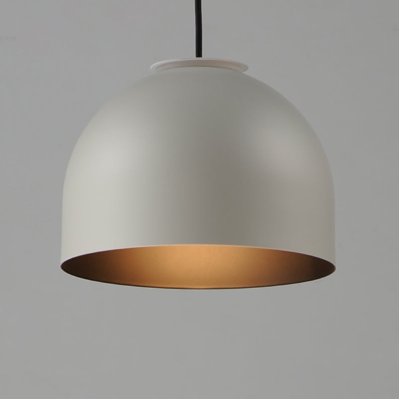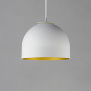 At the center of these aluminum spun pendants rests an acrylic reveal opening the top of the fixture to cast light both above and from within the structure. With three size options and finish options that include Black with a gold interior, grey with a black interior, and white with a gold interior, these pendants pair well with both modern and more traditional aesthetics.