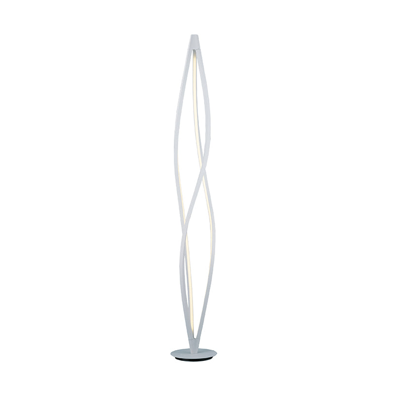 Twisted aluminum channels of Matte White terminate into solid castings to form unique and functional lighting designs. Large scale pieces can be used in conference rooms and tall entries with the comfort of long life LED on board.