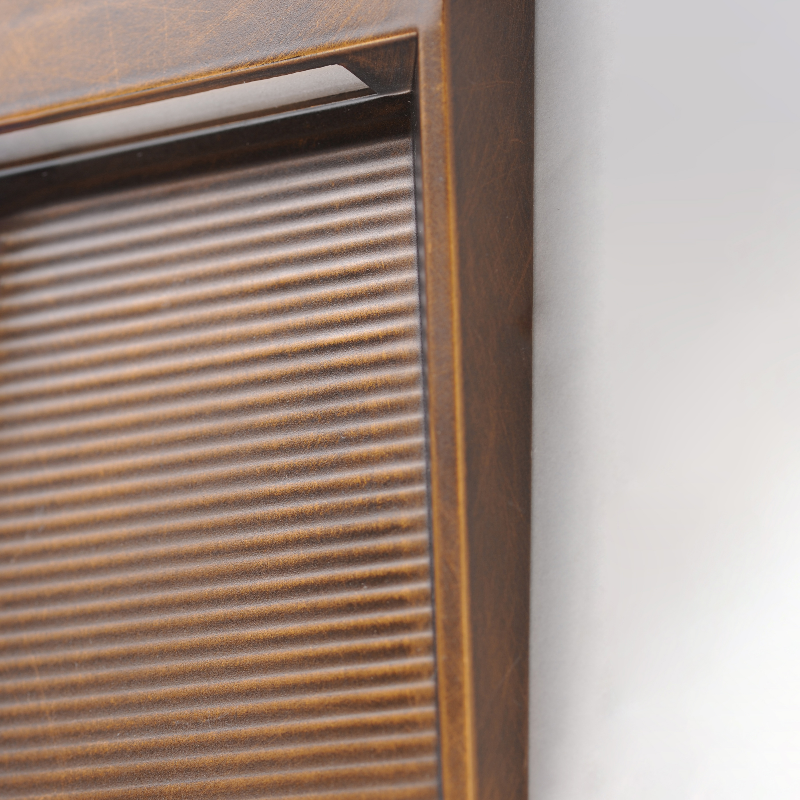 Precisely stacked beveled Clear glass symmetrically positioned in a linear design evokes images of grand city skylines. As the bevels reflect light from within, above, and below, each facet and Polished Chrome surface takes on new depths and hues that draw the eye and inspire the senses. The architectural pattern brings a modern edge to a classic 1980s style.