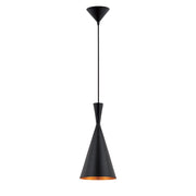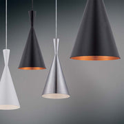 Formed metal pendant with textured metallic inner finish an indirect light source.
