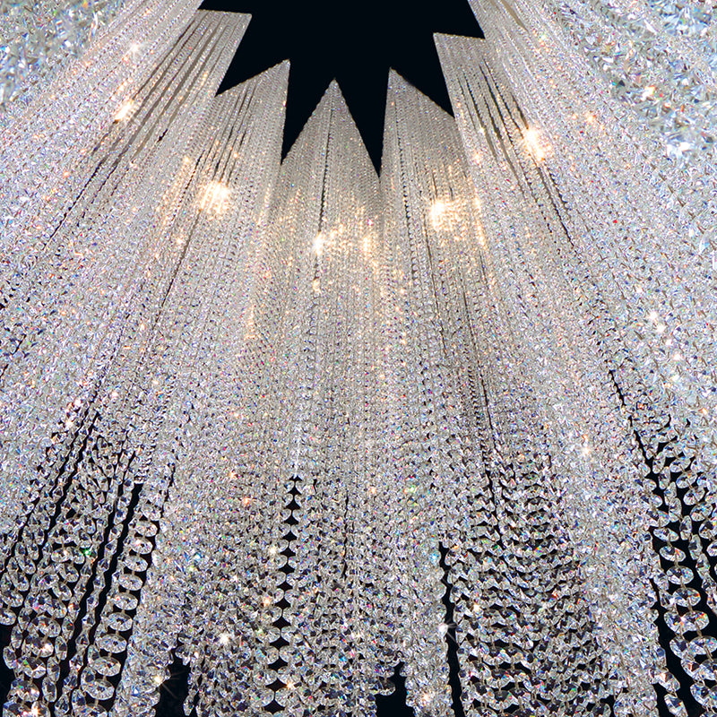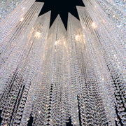 Star patterned shades of draping crystal beads supported by a chrome canopy