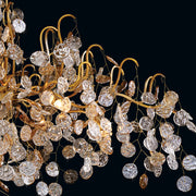 Intricate wire frame adorned by delicately hand strung glass wafers.