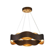 Bronze metal waves cascade LED lighting.