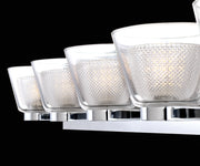 LED Light enclosed in a frosted inner and clear outer glass with chrome frame
