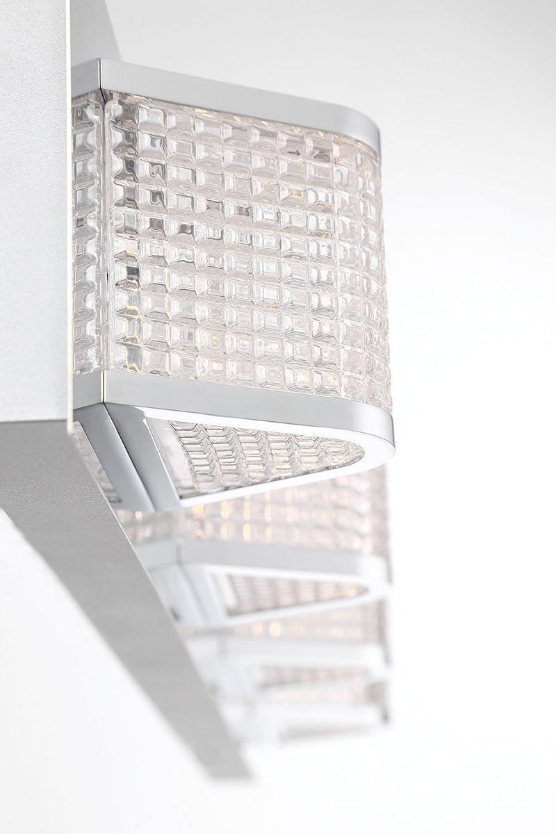 A retro prismatic glass shade complemented by chrome accents