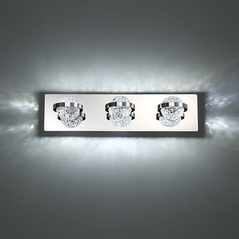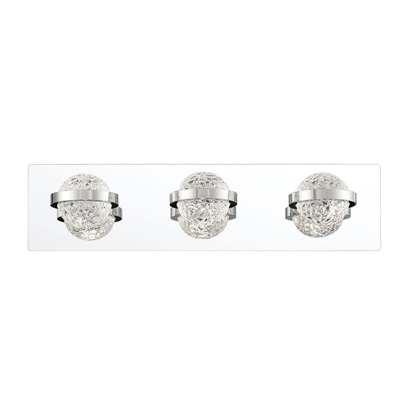 Multifaceted ice crystal spheres are fastened by a center ring.