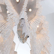 Star patterned shades of draping crystal beads supported by a chrome canopy