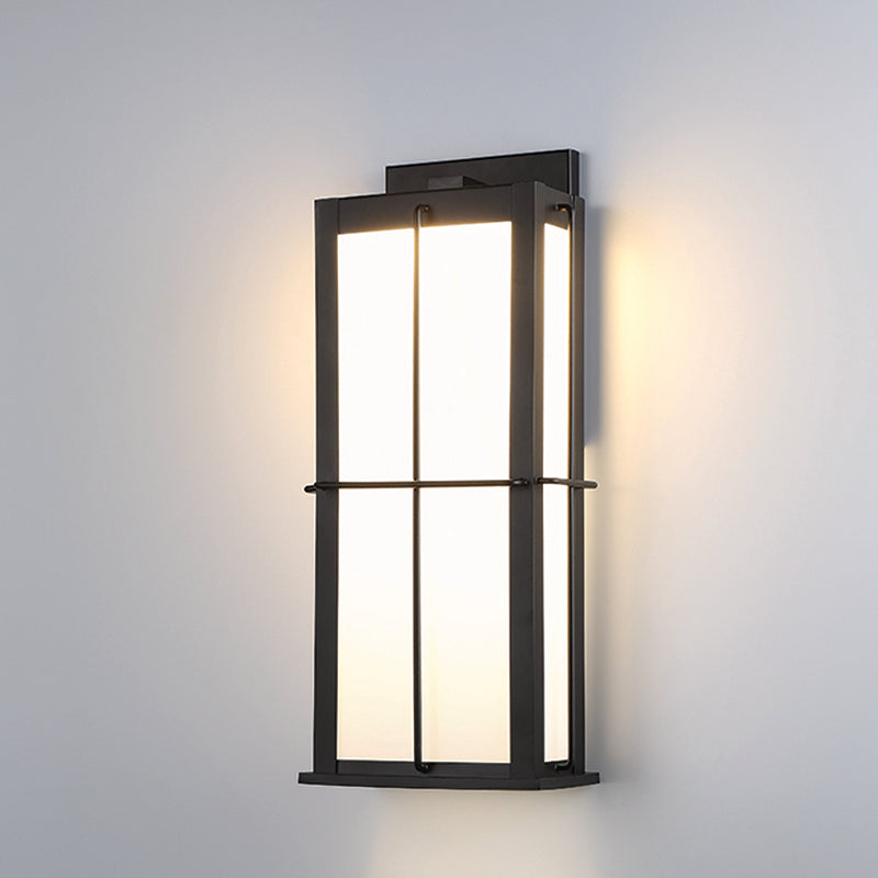 A delicate, rich black metal frame encases four opal glass panels, reminiscent of the shape of a bento box. This fixture emits a soft even glow for bright yet approachable illumination