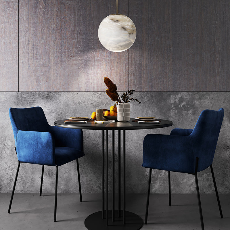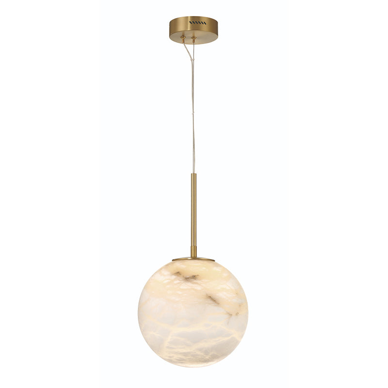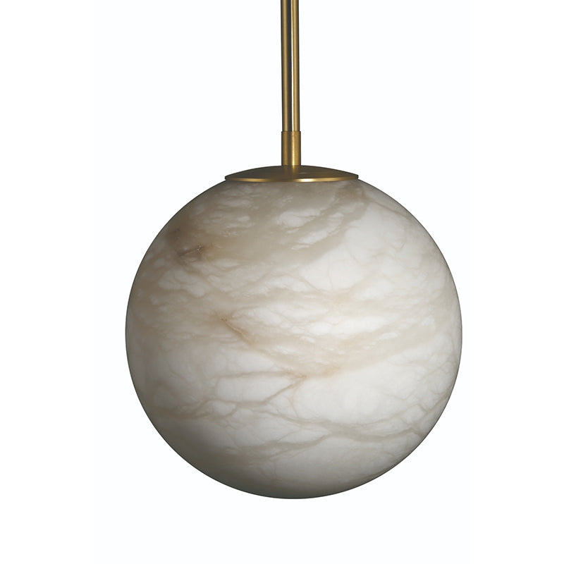 Naturally occurring deposits of iron oxides in the soft calcite stone leave trails of clouding and veining across a surface that has been cored and turned into spheres of luminous alabaster. These organic elements have been fashioned into luminaires of timeless relevance and contemporary importance.