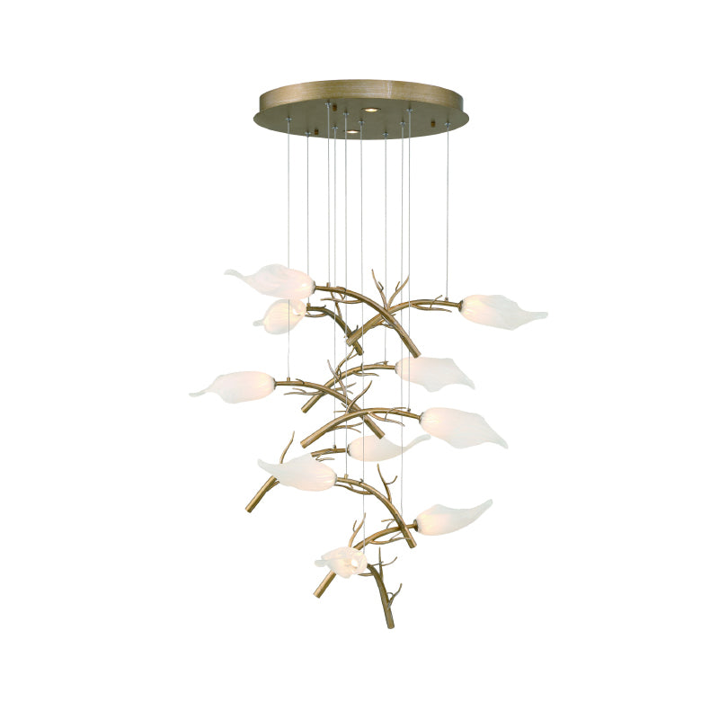 The budding flower and sinuous stem of this floral delight has been realized in cascades of luminous sprays that will add a timeless, playfully organic note to any receptive environment.